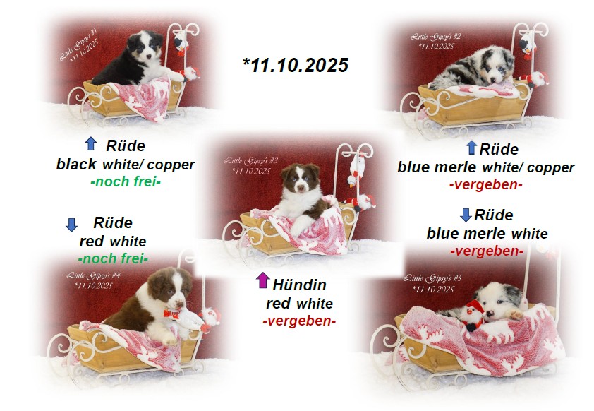 Aus unserem Wurf *11.10.2025 suchen noch 2 Rüden mit traumhaften Charakter das perfect match Porthos (#1, black white/ Rüde mit 1 blauem Auge) und Aramis (#4 red white (bi) Rüde)…